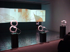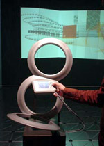 that can be manipulated by three handheld devices located within the gallery
